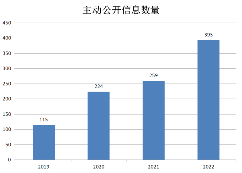 2022年共主动公开政府信息393条,其中机构职能1条;政策文件及解读14条; 部门会议4条;财政预决算信息7条;人大政协提案办理5条;公告公示51条;重点领域信息219条;行政权力运行公开信息8条;行政执法公示信息17条;其他信息67条。