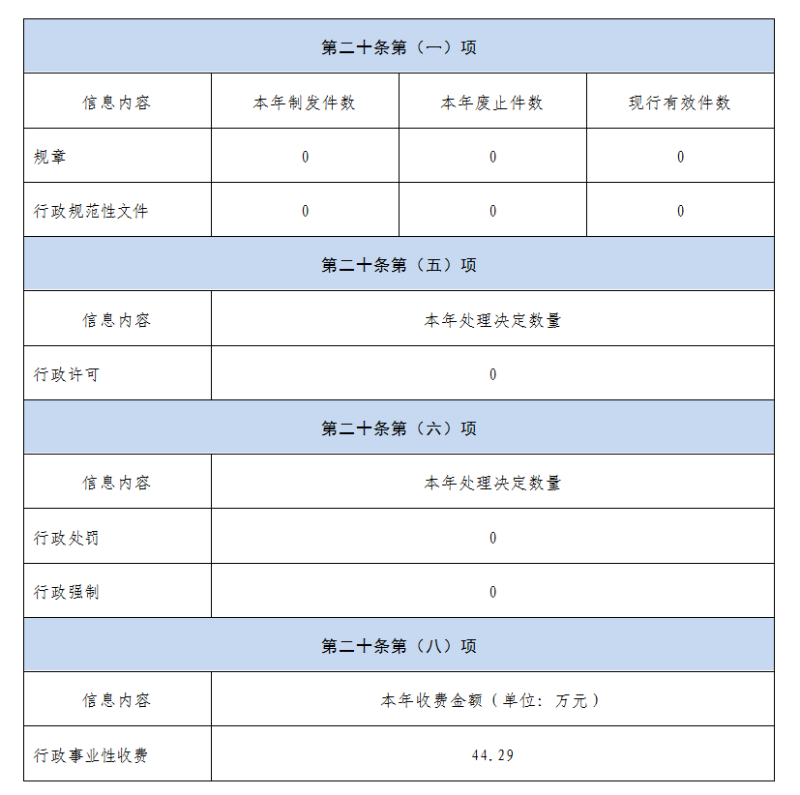 (一)依据《政府信息公开信息处理费管理办法》收取信息处理费的情况:本年度未收取信息处理费。