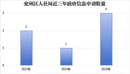 2025年度济宁市兖州区人力资源和社会保障局收到群众政府信息公开申请3件,申请事项涵盖社会保障、劳动关系、就业创业三大领域,均按时、规范答复;政府信息公开申请数量较去年增加2件。未收取政府信息公开处理费,未被提起行政复议或行政诉讼。