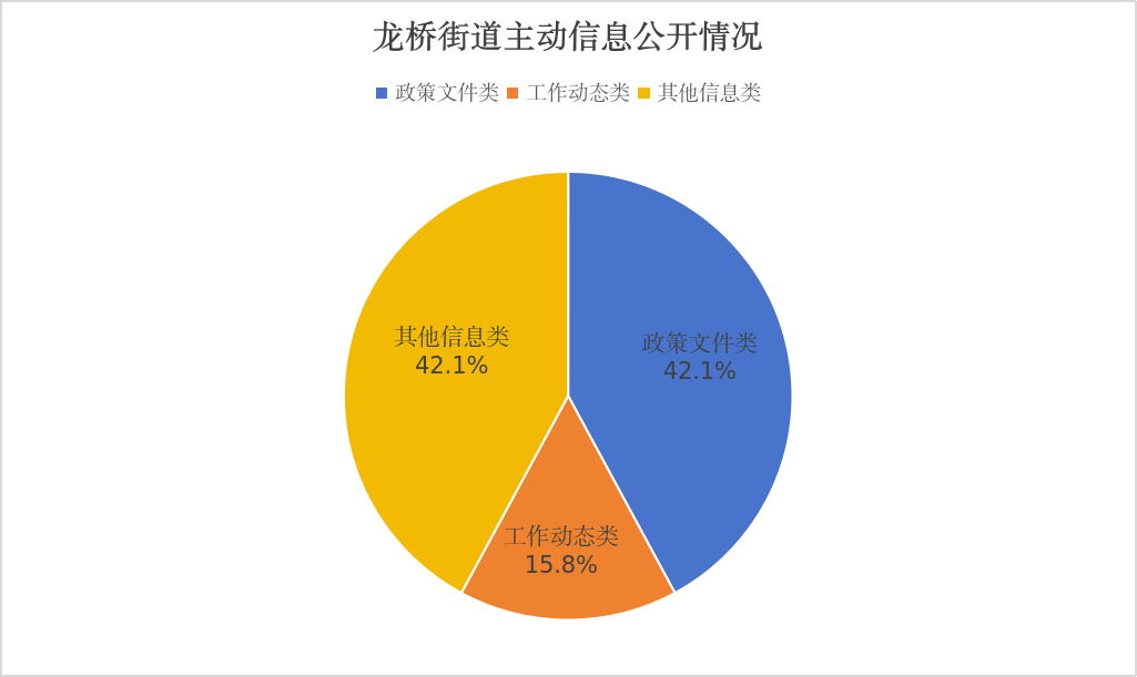 2025年,街道累计公开政府信息19条,其中政策文件类信息8条,占比42.1%;工作动态类信息3条,占比15.8%;其他类信息8条,占比42.1%。