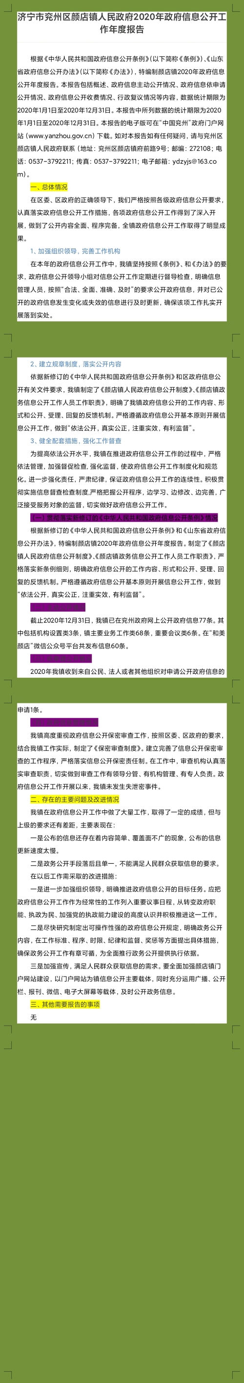 济宁市兖州区颜店镇人民政府2020年政府信息公开工作年度报告(图解)