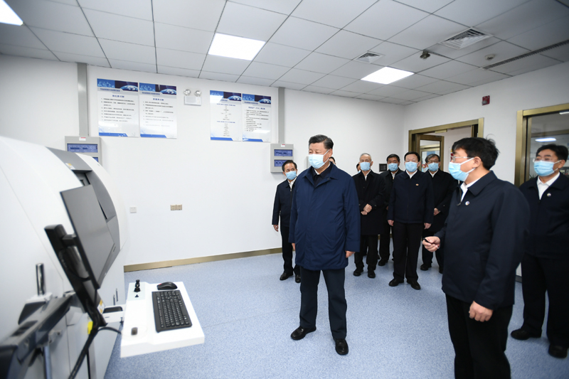 10月22日下午,中共中央总书记、国家主席、中央军委主席习近平在山东省济南市主持召开深入推动黄河流域生态保护和高质量发展座谈会并发表重要讲话。这是座谈会前,习近平21日下午在东营市胜利油田勘探开发研究院二氧化碳气驱实验室考察自主创新情况。新华社记者