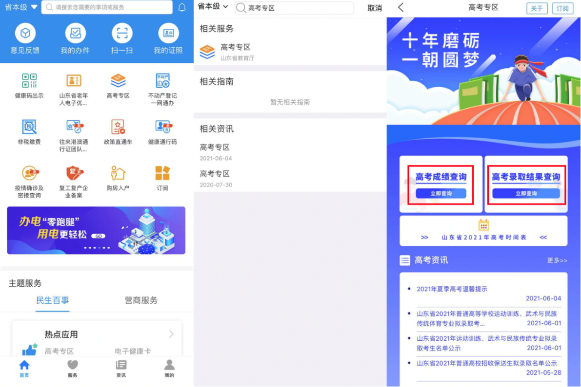 高考事关千家万户,每年的高考都会牵动无数家庭的心。今年,“爱山东”与省教育部门联合推出“2021高考专区”, 为全省考生保驾护航,有不少考生通过“爱山东”查询到了高考成绩。