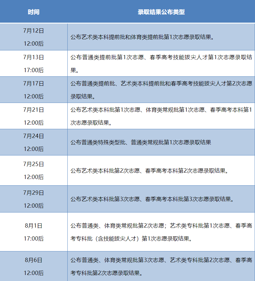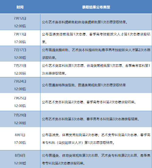附:各批次录取结果查询时间