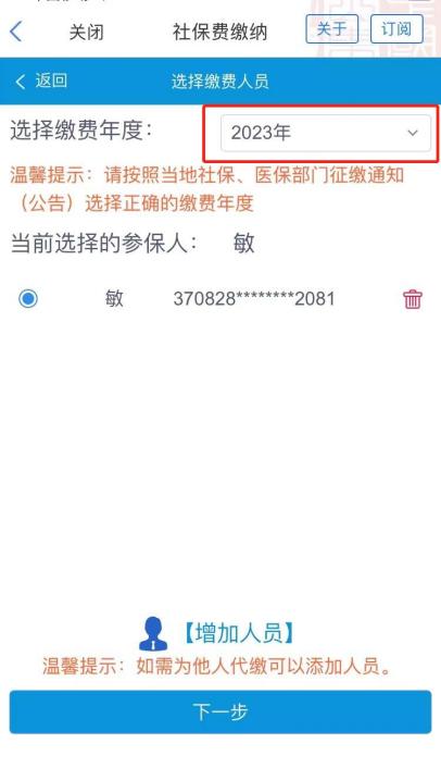 3、点击“居民医疗”或“居民养老”,选择缴费年度、增加人员,进行缴费。