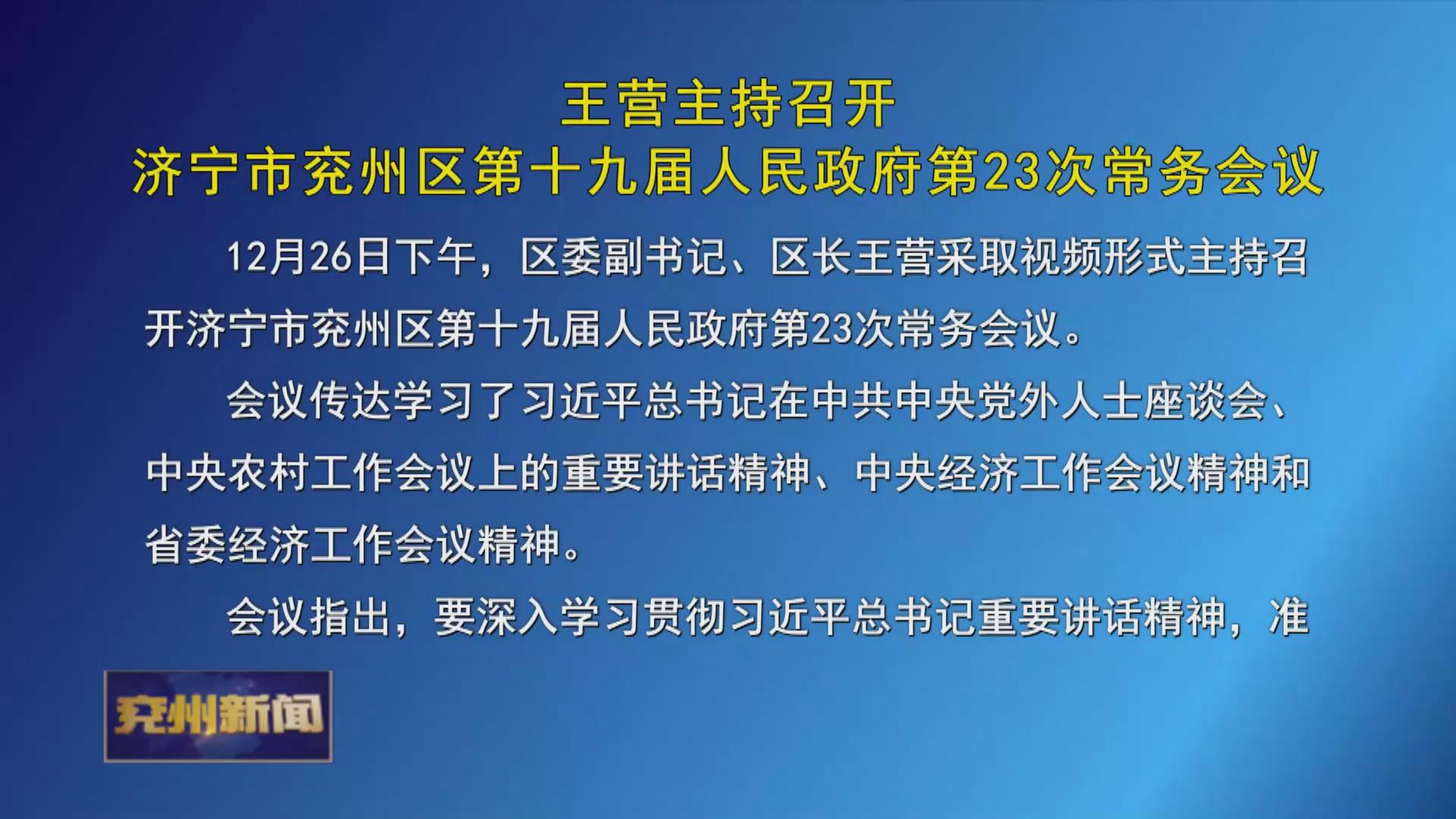 12月26日下午,区委副书记、区长王营采取视频形式主持召开区十九届人民政府第23次常务会议。会议传达学习了习近平总书记在中共中央党外人士座谈会、中央农村工作会议上的重要讲话精神、中央经济工作会议精神和省委经济工作会议精神。