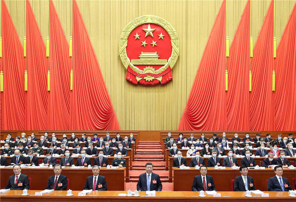 习近平、李克强、汪洋、王沪宁、赵乐际、韩正、王岐山和大会主席团成员在主席台就座。