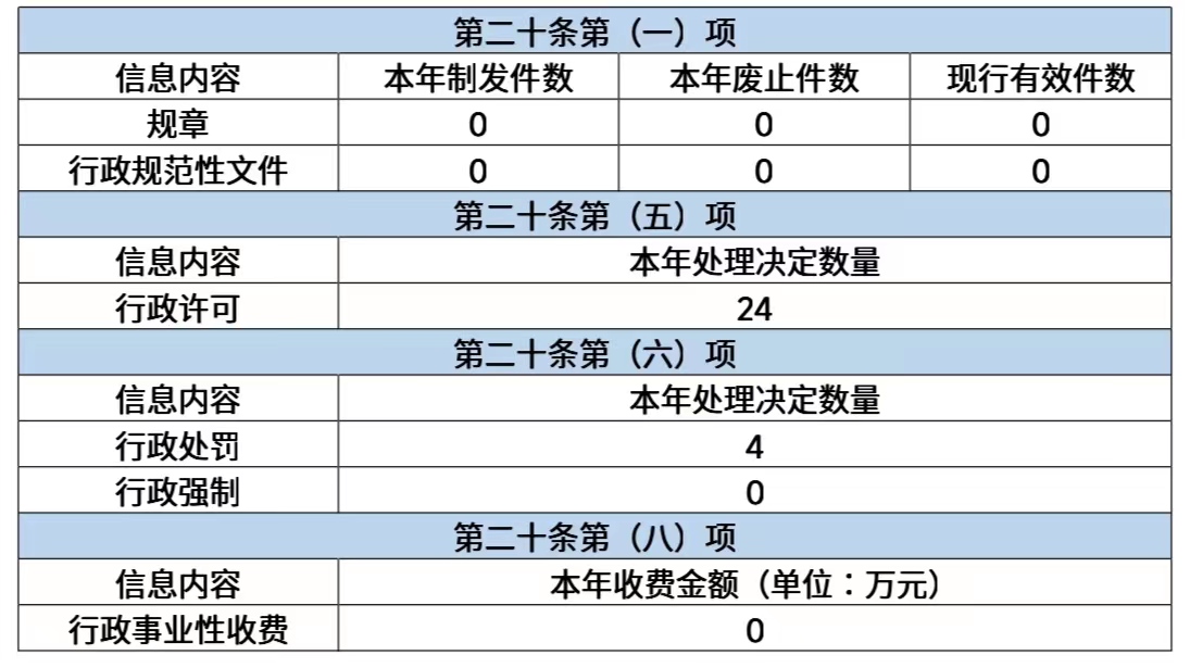 本报告内容包括总体情况、主动公开政府信息情况、收到和处理政府信息公开申请情况、政府信息公开行政复议和行政诉讼情况、存在的主要问题及改进情况、其他需要报告的事项等六部分内容。