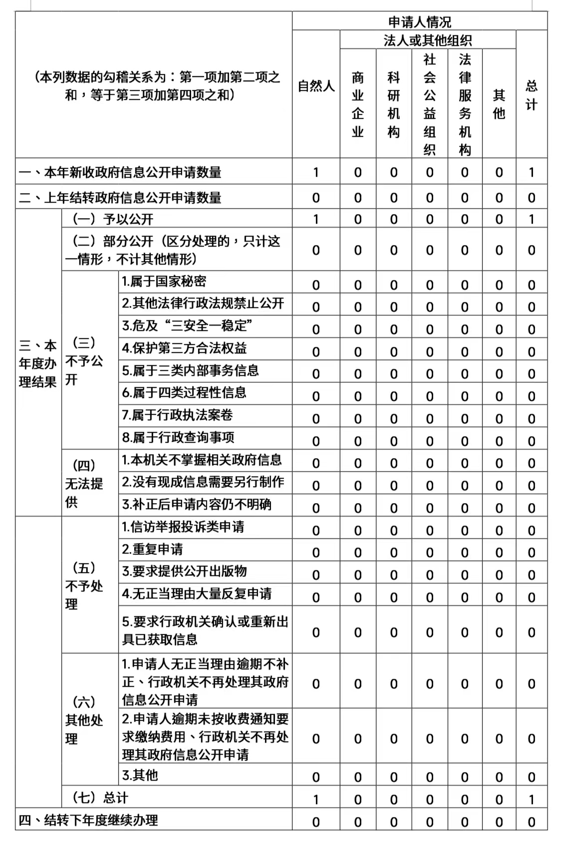(二)依申请公开情况