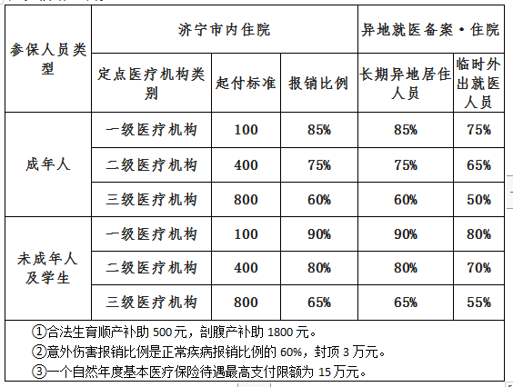 (1)济宁市城乡居民基本医疗保险住院待遇