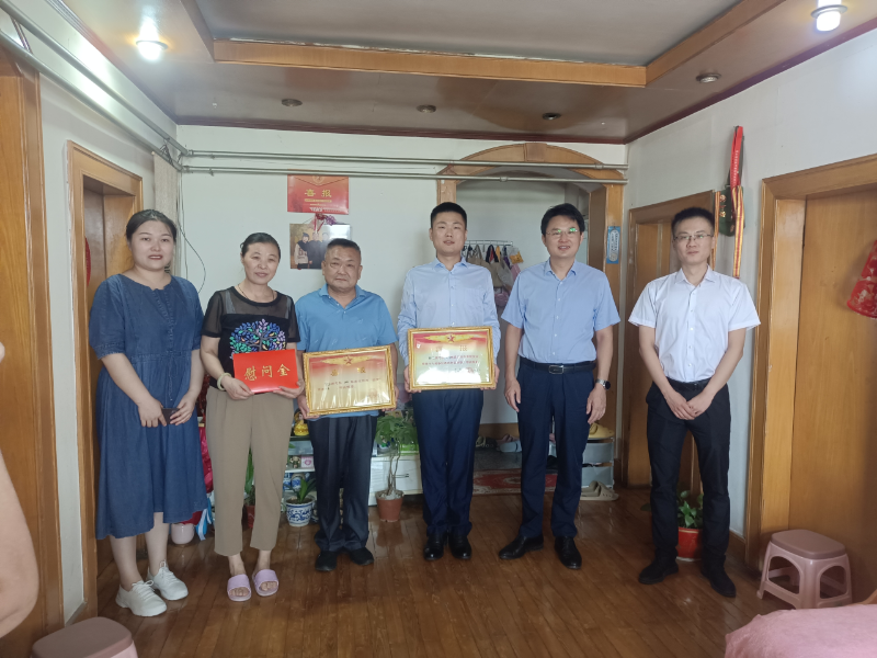 谢斌书记一行为荣获战备训练平时三等功个人及“四有”优秀士兵的武警士官军民社区郭龙家庭送去立功受奖双份喜报、慰问金。同时,与军人军属亲切交谈,详细询问他们的工作、生活情况,并表示在部队能同时获得双喜报实属来之不易,鼓励其家人一如既往关心支持郭龙,扎根部队、再立新功!