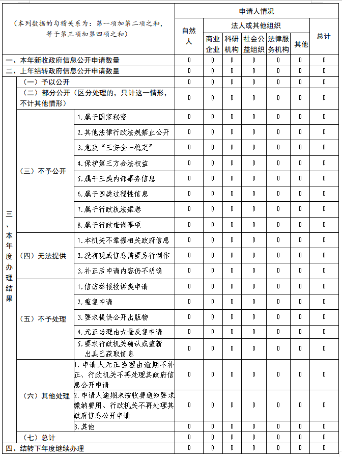 (五)政府信息公开工作年度报告数据统计说明的事项