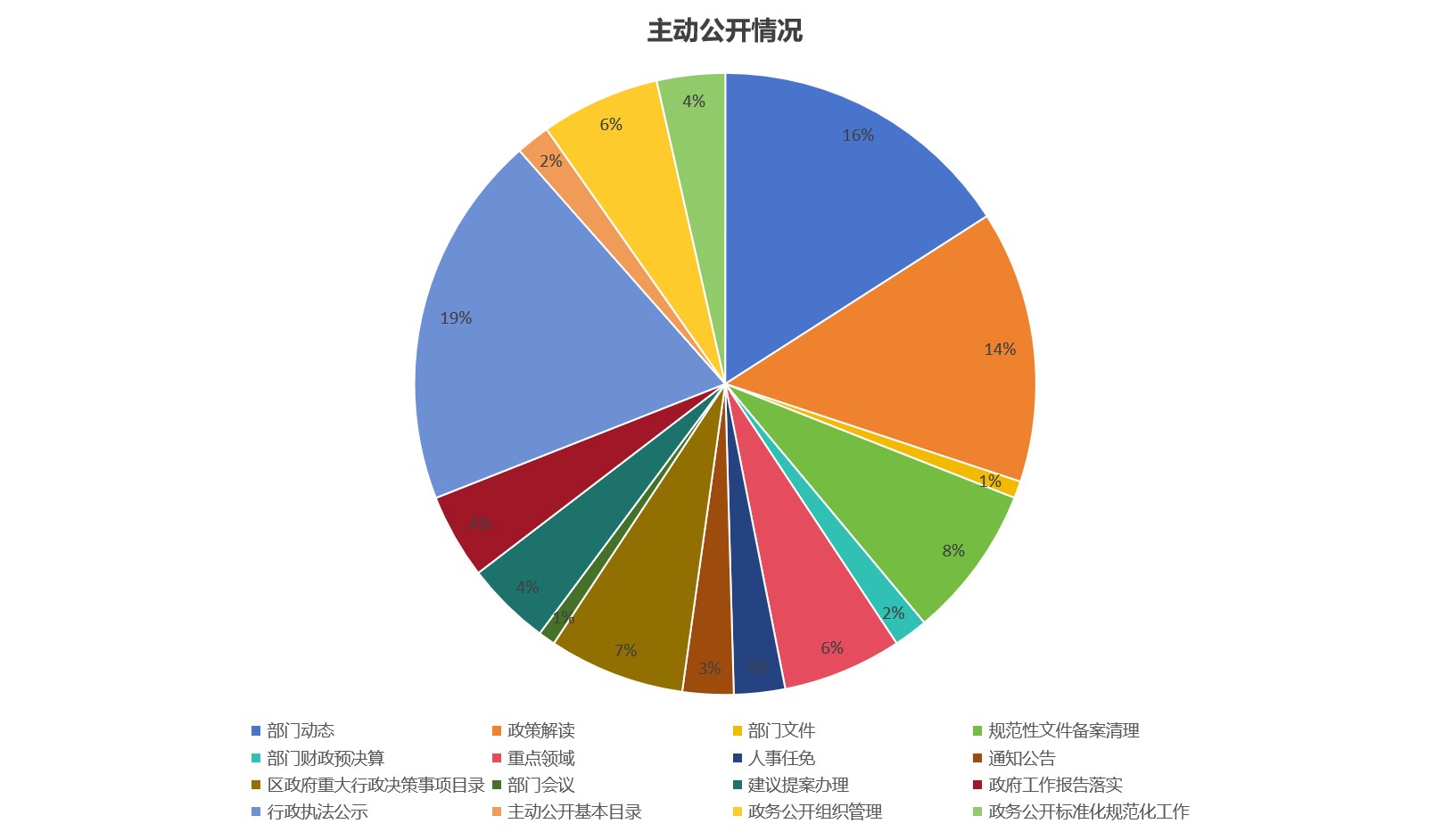 2023年,区司法局坚持“以公开为常态、不公开为例外”的原则,主动公开政府信息113条,其中部门动态信息18条,政策解读16条,部门文件1条,规范性文件备案清理9条,部门财政预决算信息2条,重点领域7条,人事任免3条,通知公告3条,区政府重大行政决策事项目录8条,部门会议1条,建议提案办理5条,政府工作报告落实5条,行政执法公示22条,主动公开基本目录2条,政务公开组织管理7条,政务公开标准化规范化工作4条。深入推进公共法律服务领域基层政务公开标准化规范化,主动公开力求全面及时,解读回应力求准确有效。