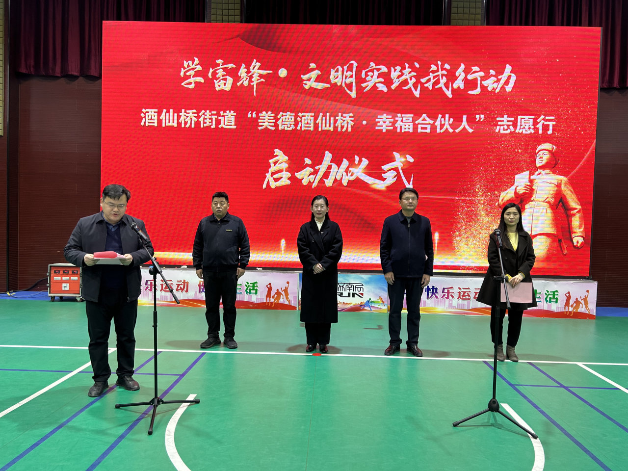 三月芳菲至,举头春风归。在第61个学雷锋纪念日,也是第25个“中国青年志愿者服务日”来临之际,酒仙桥街道隆重举办“美德酒仙桥·幸福合伙人”志愿行启动仪式,区委常委、宣传部部长张允锐,区新时代文明实践中心主任李鸿飞,街道党工委书记谢斌,街道党工委副书记、办事处主任李海峰,街道社区建设和物业管理办公室主任岳雯婧,联建单位代表、公益组织代表、爱心商家代表、街道机关及各村居青年志愿服务队参加活动。
