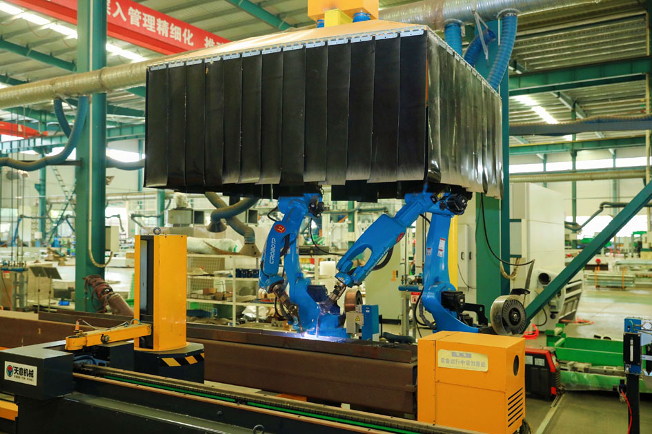 “原来没有机器人作业,焊接一个模台大约需要七个人,一天才能焊制出一台,现今焊接机器人的投入使用,大大节约了人力成本,提高了生产效率。”在天意机械的自动化生产车间,天意集团生产副总经理秦宪军介绍道。