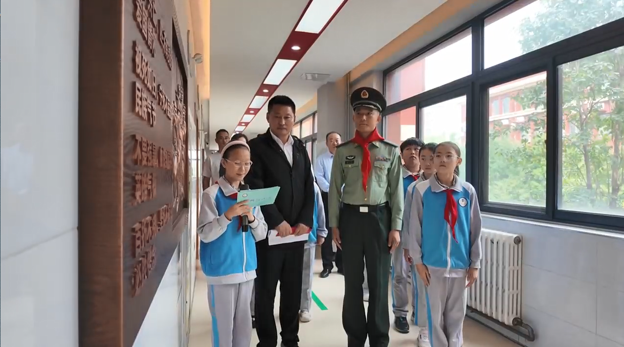 “赤足先锋连”连长高飞跟随红领巾讲解员参观学校展馆,不仅手把手指导学生队列训练,更用连队红色故事点燃孩子们的爱国心;