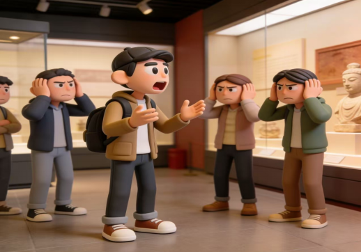 博物馆参观时大声交谈,高铁或旅游大巴上手机外放,干扰他人体验。