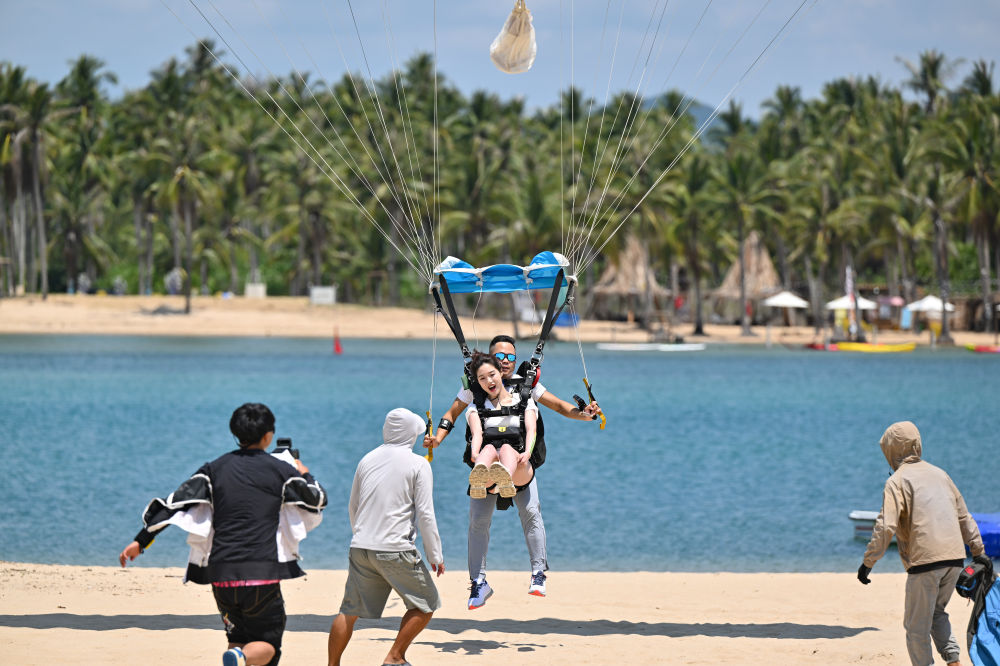 刚刚过去的“五一”假期,三亚塔赫跳伞基地日均接待量较平日增长约70%,2024年基地接待跳伞客人超过1万人次,今年一季度已经达到6000人次。三亚塔赫极限运动俱乐部有限公司总经理张恩铭说:“低空旅游以高空视角赋予传统景区全新魅力,尤其受年轻群体追捧。”
