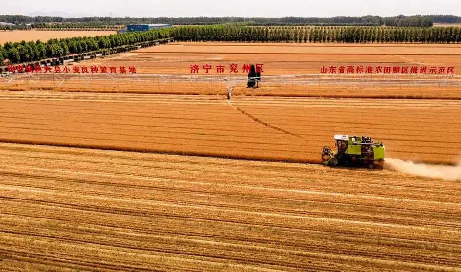 初夏时节,麦浪翻滚,金黄遍野,兖州区39万亩麦田已进入收获期。新兖镇前杨庄村的高标准农田里,大型联合收割机轰鸣作业,高效有序地收割着颗粒饱满的小麦。