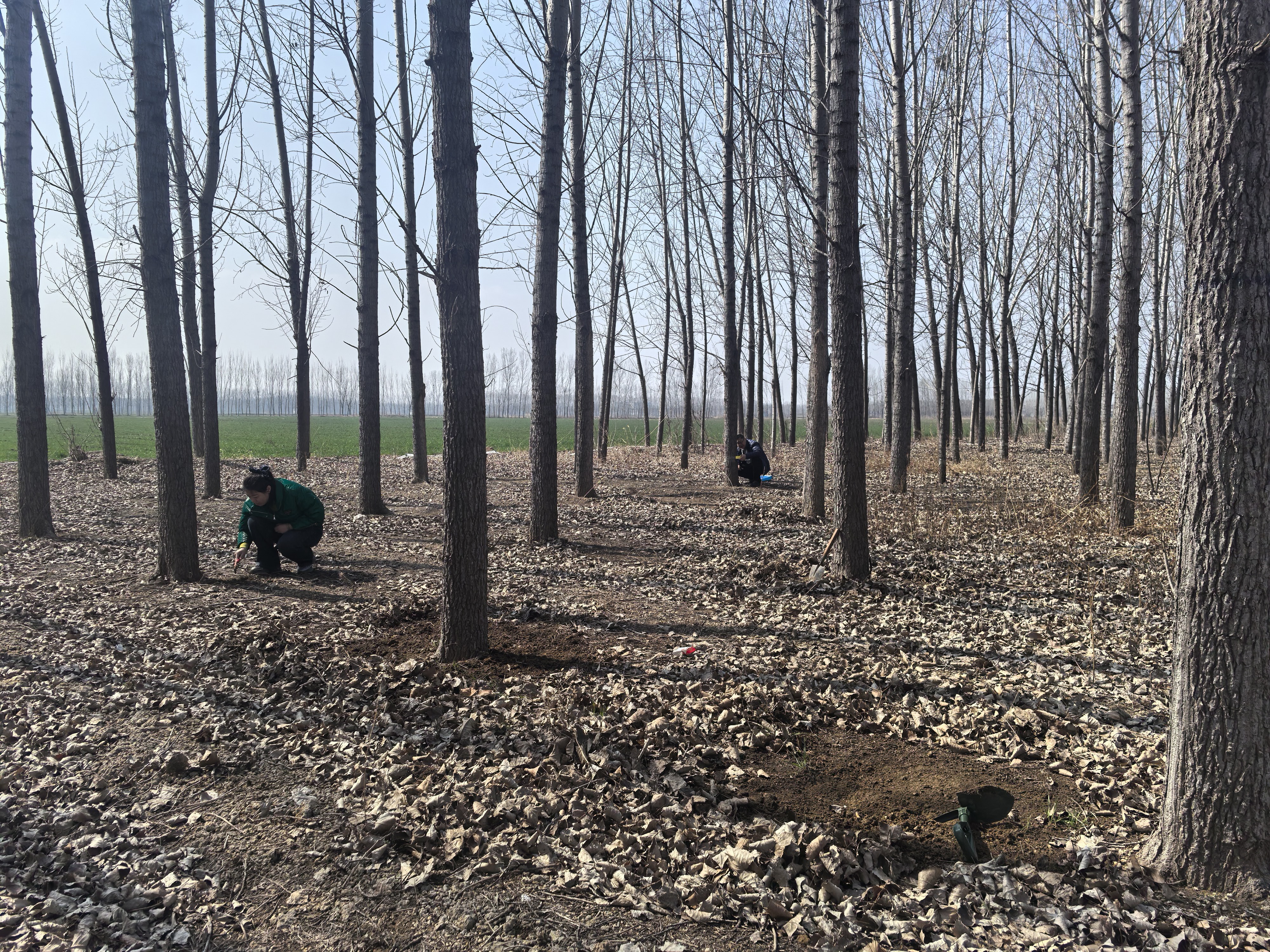此次调查以常发区、易发区、片林、苗圃地为重点区域,采取“线路踏查+标准地”相结合的方式,针对春尺蠖、美国白蛾、杨树舟蛾等主要林业有害生物开展排查。技术人员深入林间地块,细致查看树干裂缝、枝杈、树根周边土壤及枯枝落叶层等病虫害越冬场所,逐株记录有害生物虫态、数量、分布范围,同步采集标本与影像资料,科学分析虫口密度、存活率等关键数据,确保调查数据真实、准确、全面。