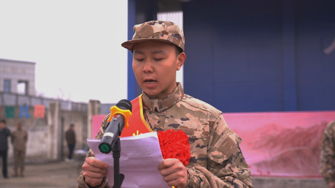 新兵代表李冰冰在大会上发言,表达了参军入伍、报效祖国的坚定决心,表示将牢记家乡人民的嘱托,在军营中刻苦训练、磨练意志,早日成长为一名合格军人,为强军事业贡献青春力量。