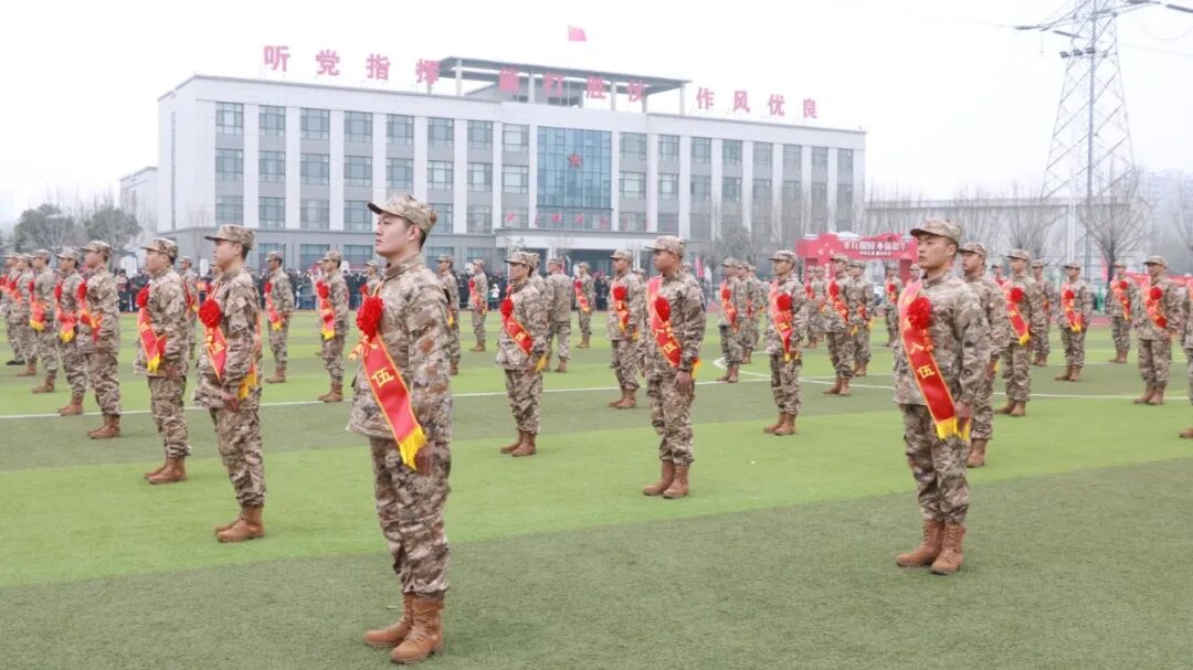 大会在庄严的中华人民共和国国歌声中拉开帷幕。全体人员肃立,高唱国歌,新兵们身姿挺拔、目光坚毅,展现出新时代青年投身国防的昂扬斗志。