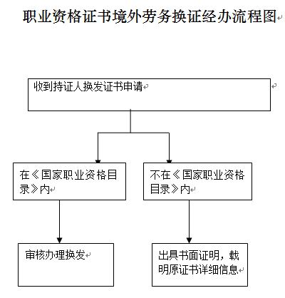 | 境外劳务和出国就业人员国家职业资格证书换发申请受理 | 受理境外劳务和出国就业人员国家职业资格证书换发申请 | 5个工作日 | 国家职业资格目录清单之内的换发证书,之外的开具证明 |